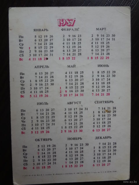 Календарик 1987 г. Госстрах. Страхование средств транспорта.