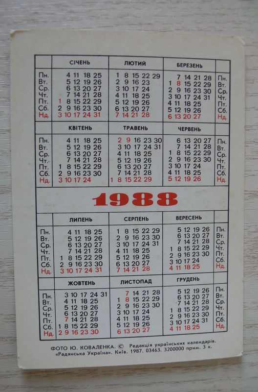 Календарик, 1987, Гриб боровик, изд. Украина.