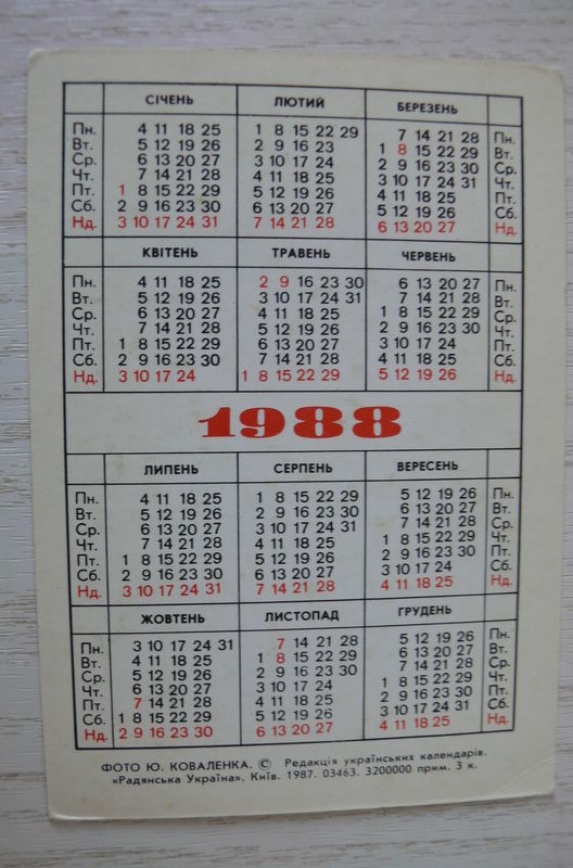 Календарик, 1987, Гриб боровик, изд. Украина.