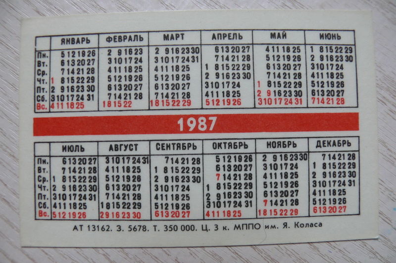 Календарик, 1987, Минск, ул. Мирошниченко.
