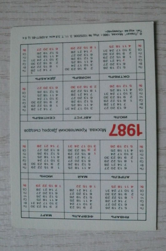 Календарик, 1987, Москва. Кремлевский Дворец съездов, из серии "70. Октябрь".