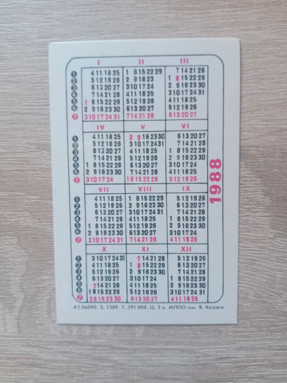 Календарик 1988