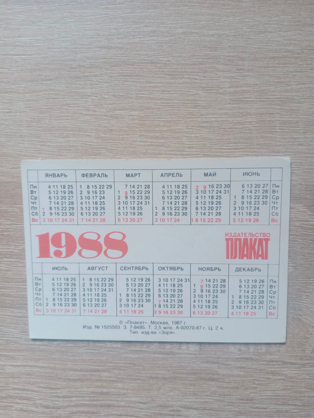 Календарик 1988