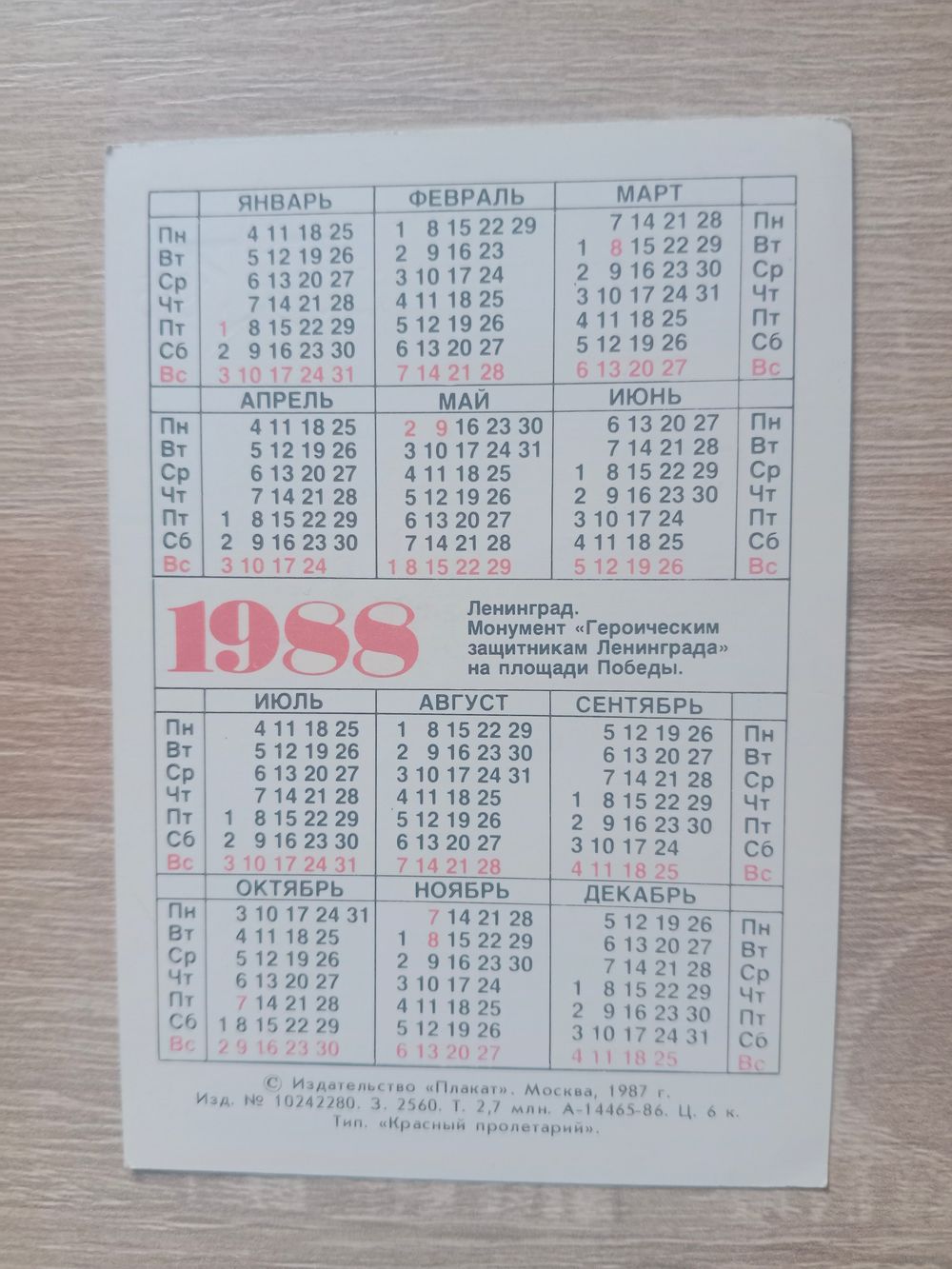 Календарик 1988