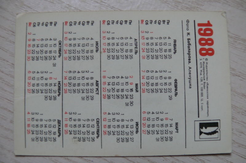 Календарик, 1988, Алёнушка, изд. "Кавказская здравница".