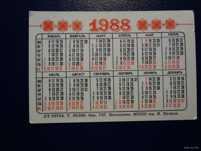 Календарик 1988 г. МАЗ.