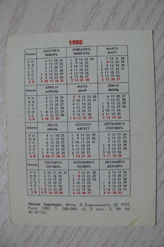Календарик, 1988, Рига. Замок Турайдас.