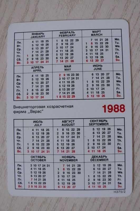 Календарик, 1988, Внешнеторговая хозрасчетная фирма "Верас". Холодильник "Минск-15М".