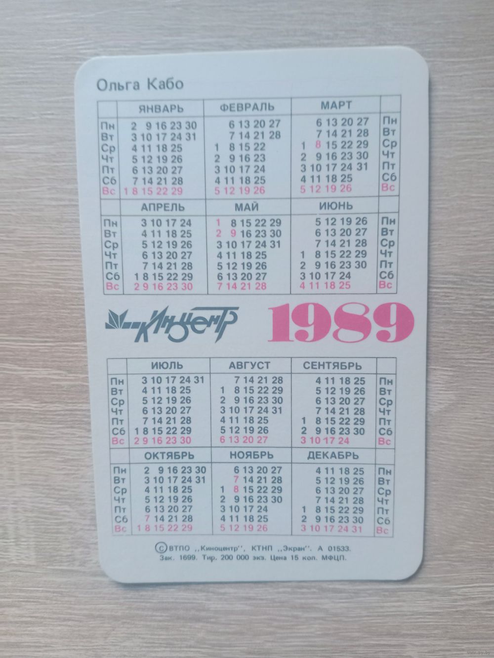 Календарик 1989