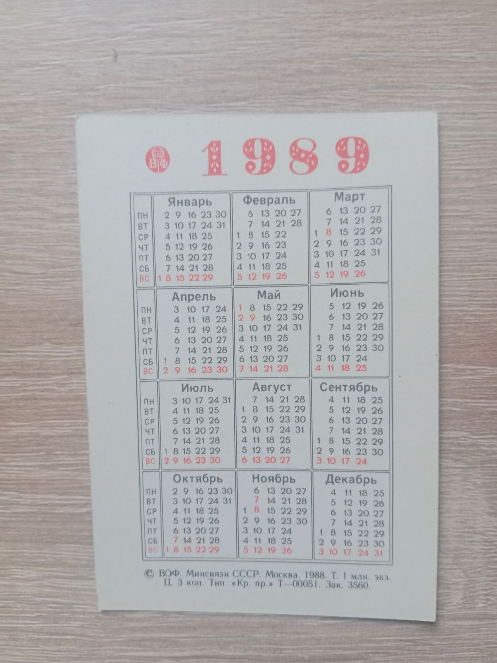 Календарик 1989