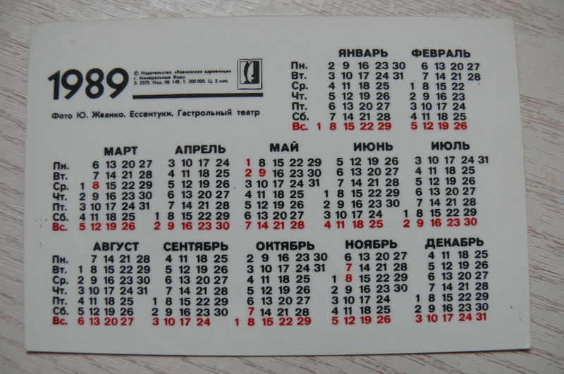 Календарик, 1989, Ессентуки. Гастрольный театр, изд. "Кавказская здравница".