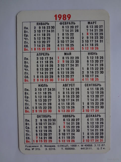 Календарик 1989 г. Дом художника П.Е. Щербова в Гатчине.