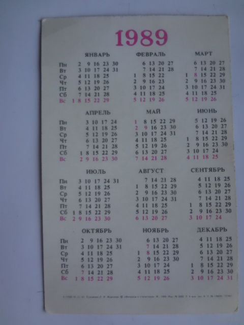 Календарик 1989 г. Госстрах.