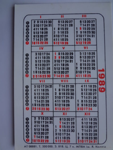 Календарик 1989 г. Речка.