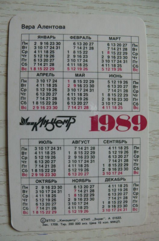 Календарик, 1989, Киноцентр. Актеры. Алентова Вера.
