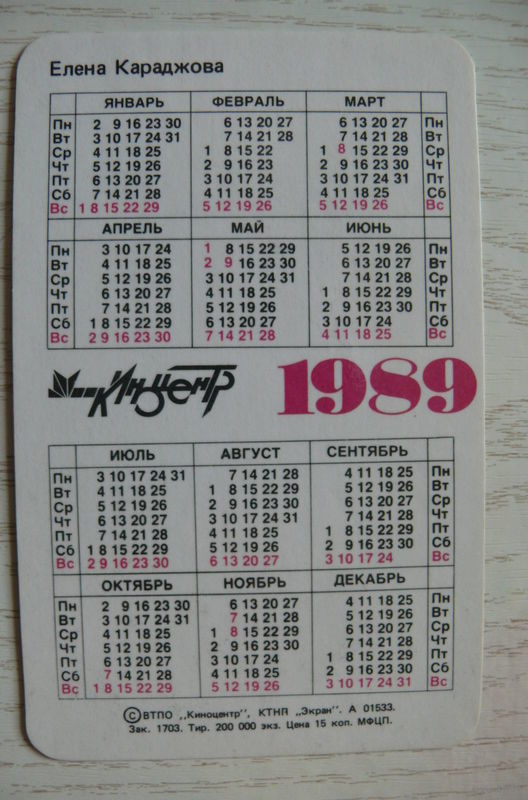 Календарик, 1989, Киноцентр. Актеры. Караджова Елена.