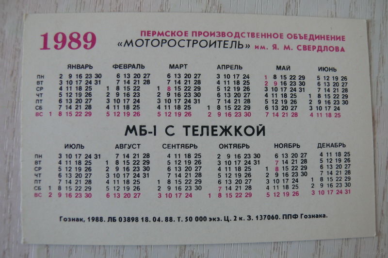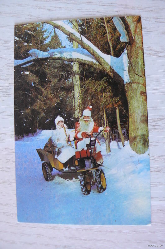 Календарик, 1989, Мотоблок МБ-1 с тележкой ПО "Моторостроитель" (Дед Мороз и Снегурочка).