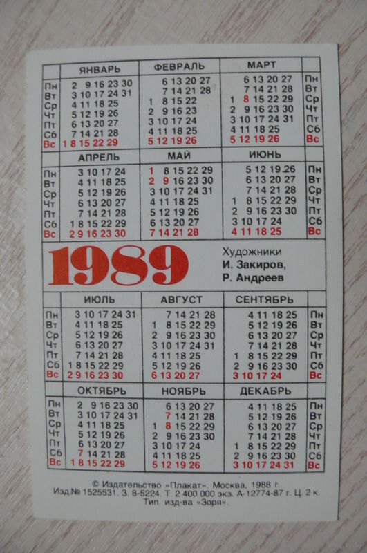 Календарик, 1989. Созидая, не разрушай! (бабочка).