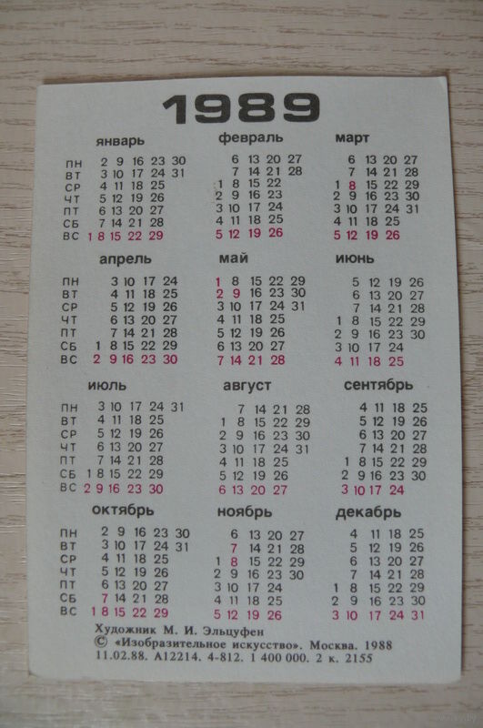 Календарик, 1989, Всесоюзная перепись населения (коричневый).