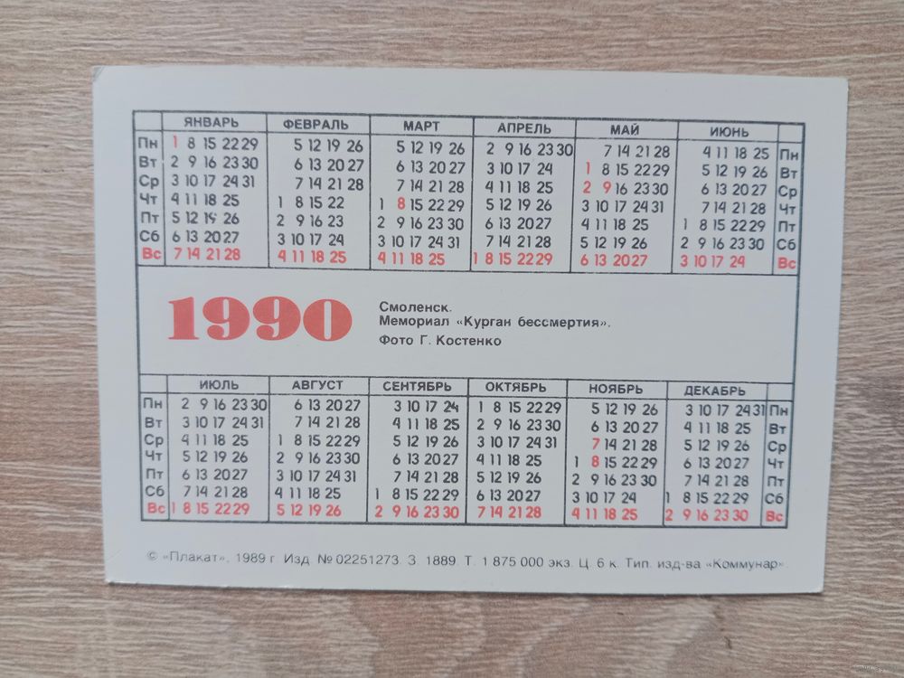 Календарик 1990