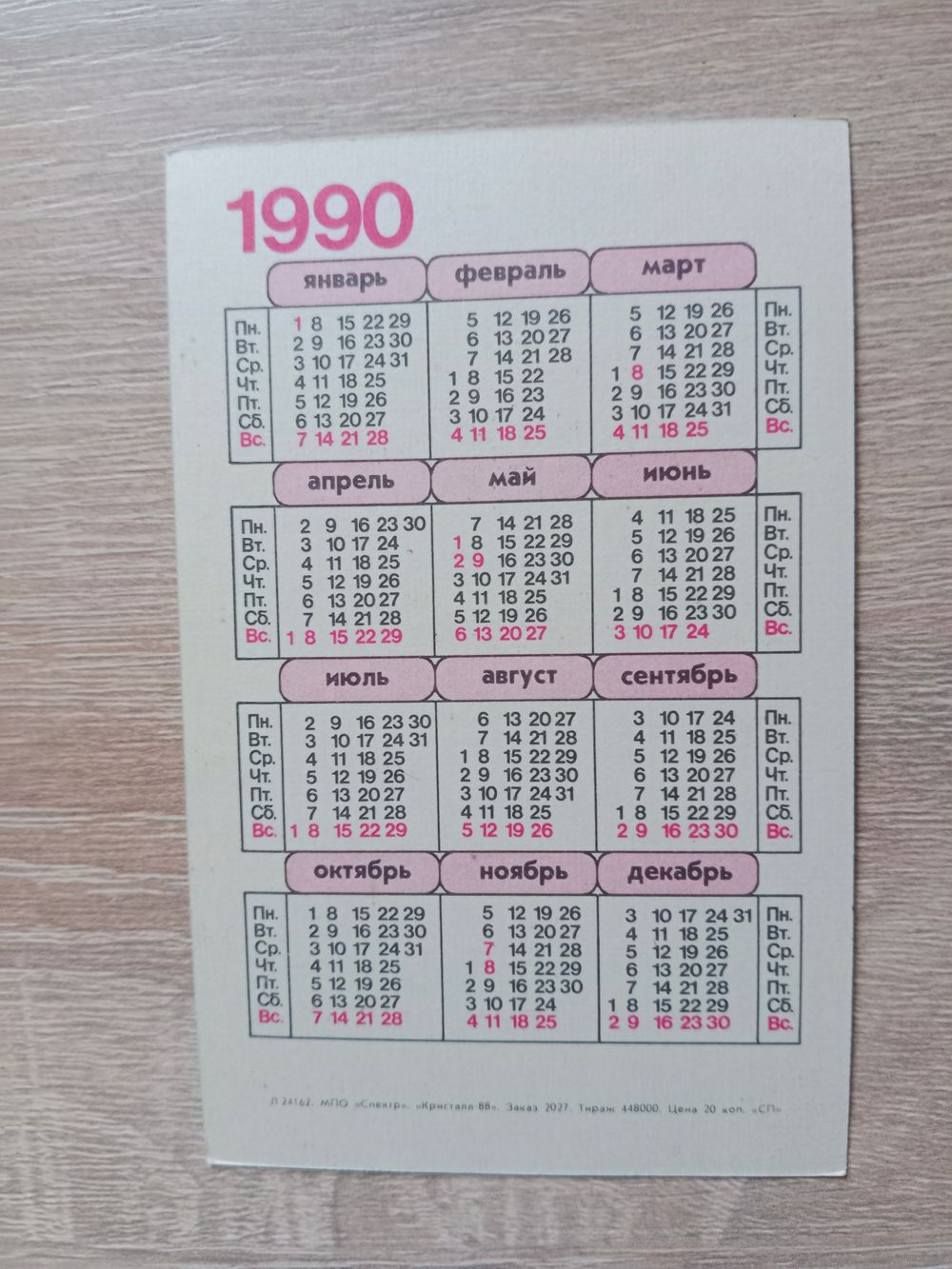 Календарик 1990