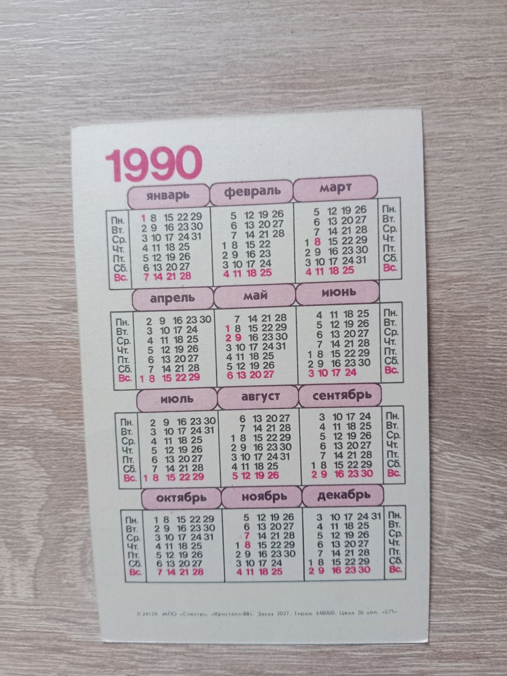 Календарик 1990