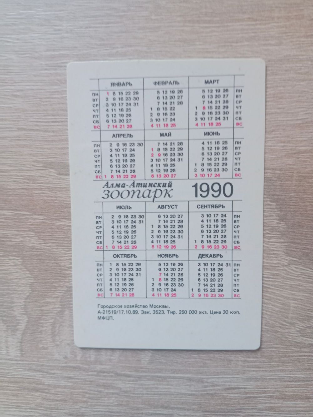 Календарик 1990