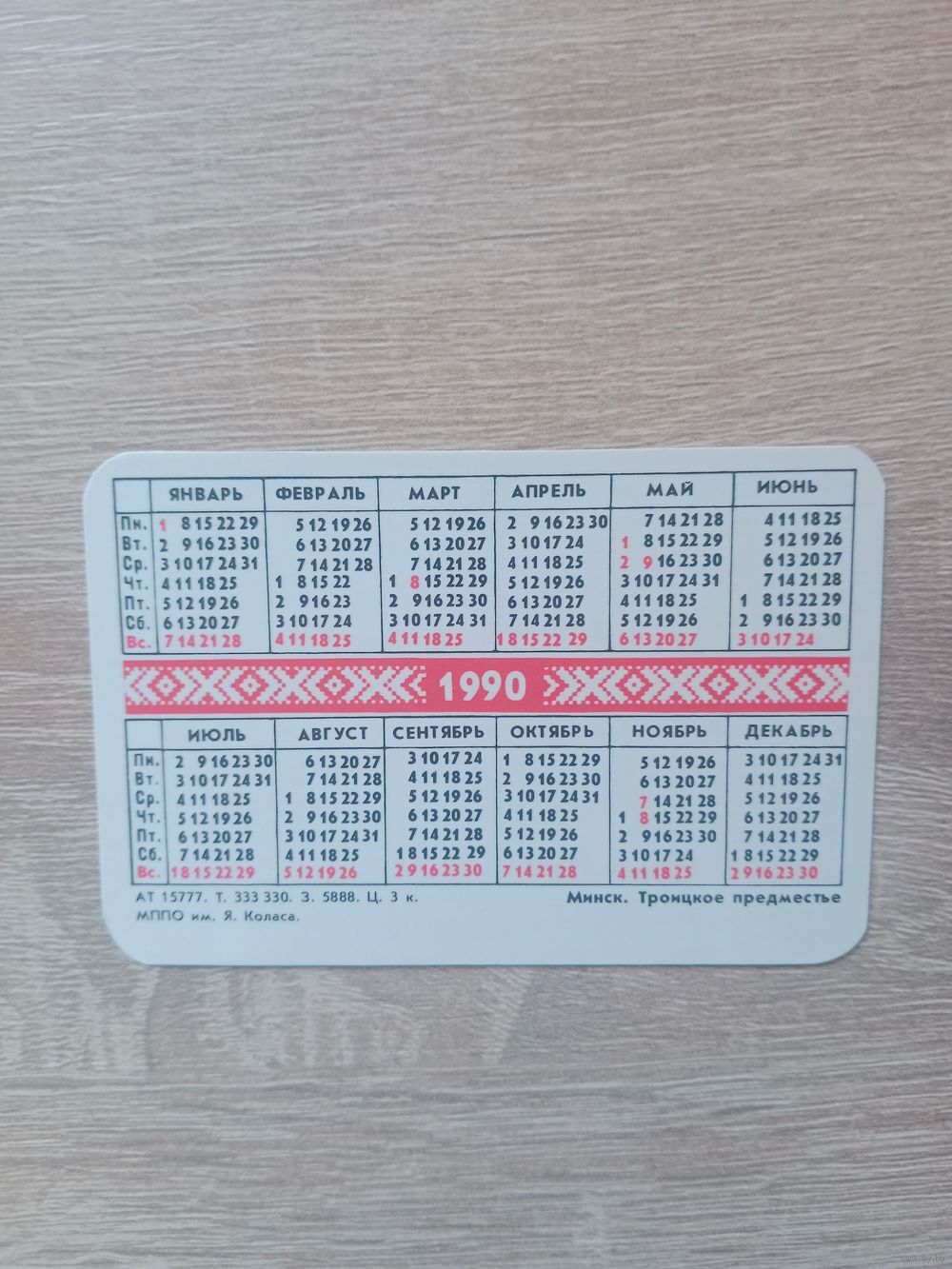 Календарик 1990