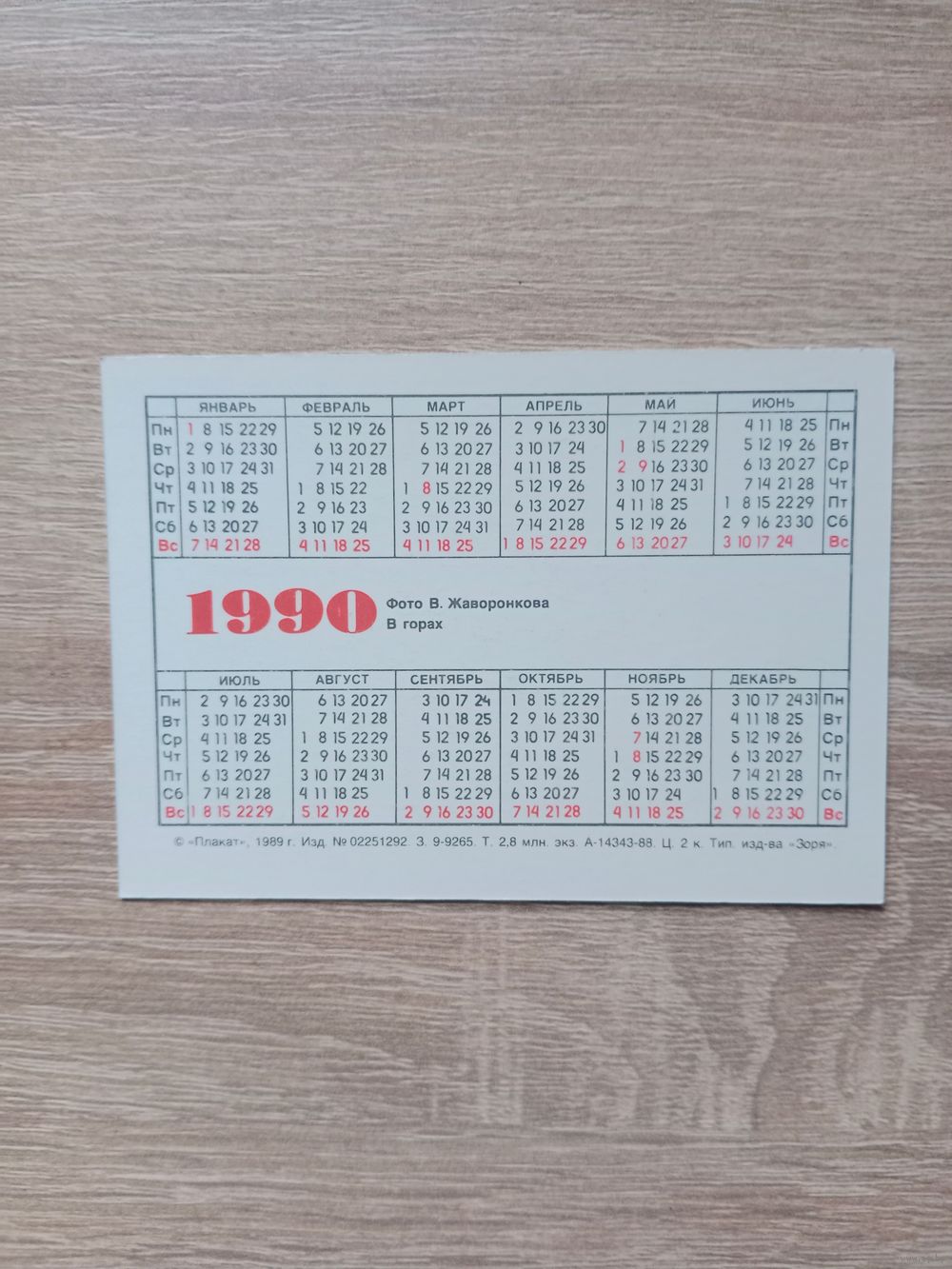 Календарик 1990