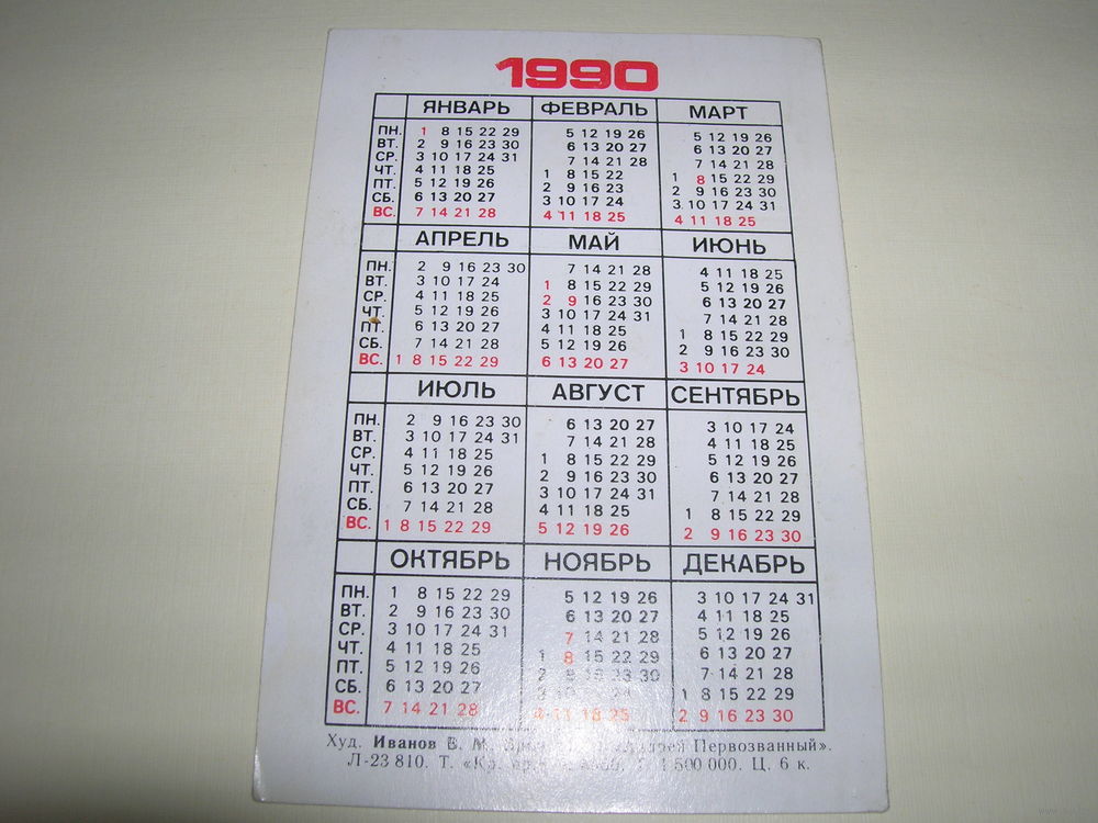 Календарик 1990 год Броненосец Андрей Первозванный