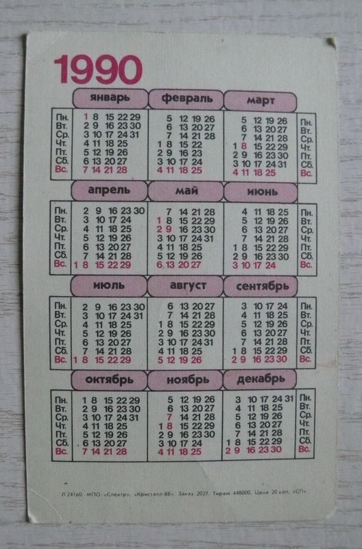 Календарик, 1990, Кошка.