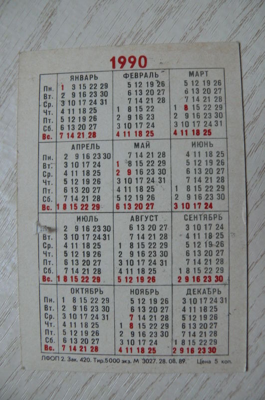 Календарик, 1990. Ленинград. ВНИИГС (научно-исследовательский институт гидромеханизации, санитарно-технических и специальных строительных работ).