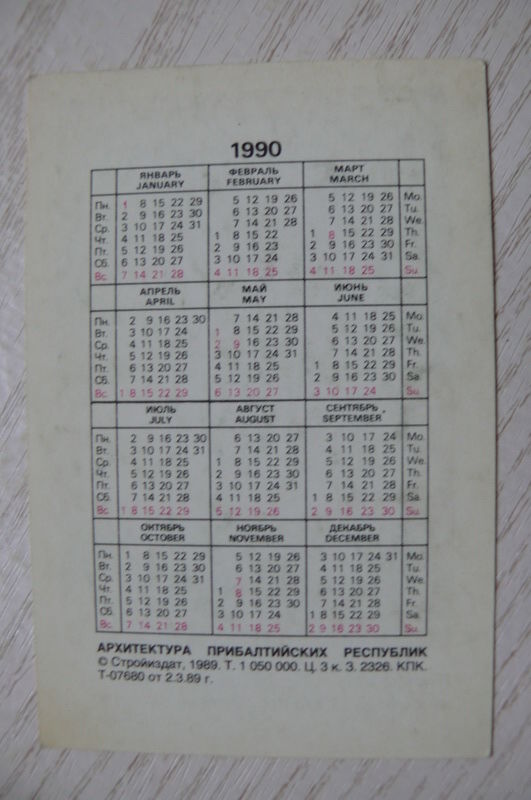 Календарик, 1990, Литва. Тракайский замок, из серии "Архитектура Прибалтийских республик".