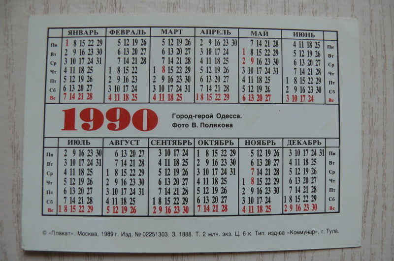 Календарик, 1990, Одесса, из серии "1945-1990".