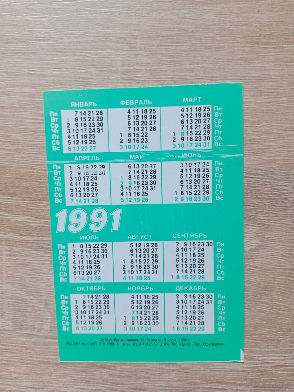 Календарик 1991