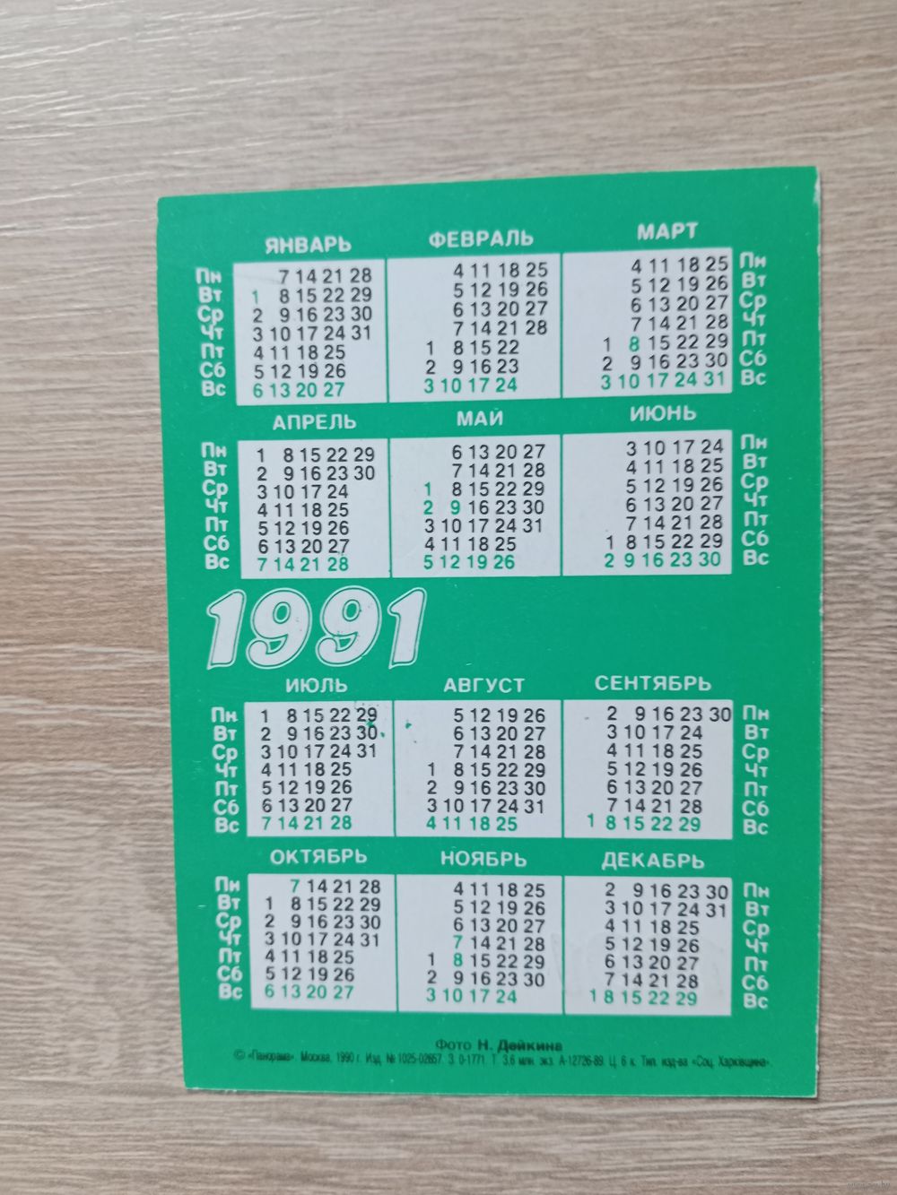 Календарик 1991
