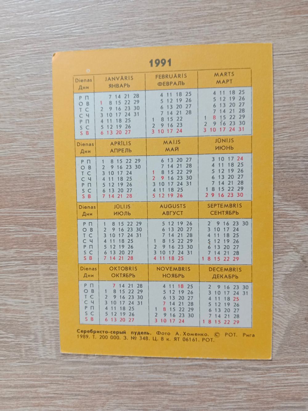 Календарик 1991