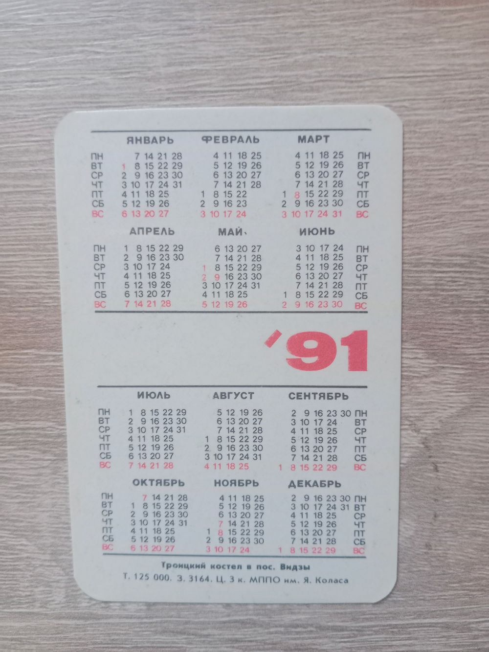 Календарик 1991