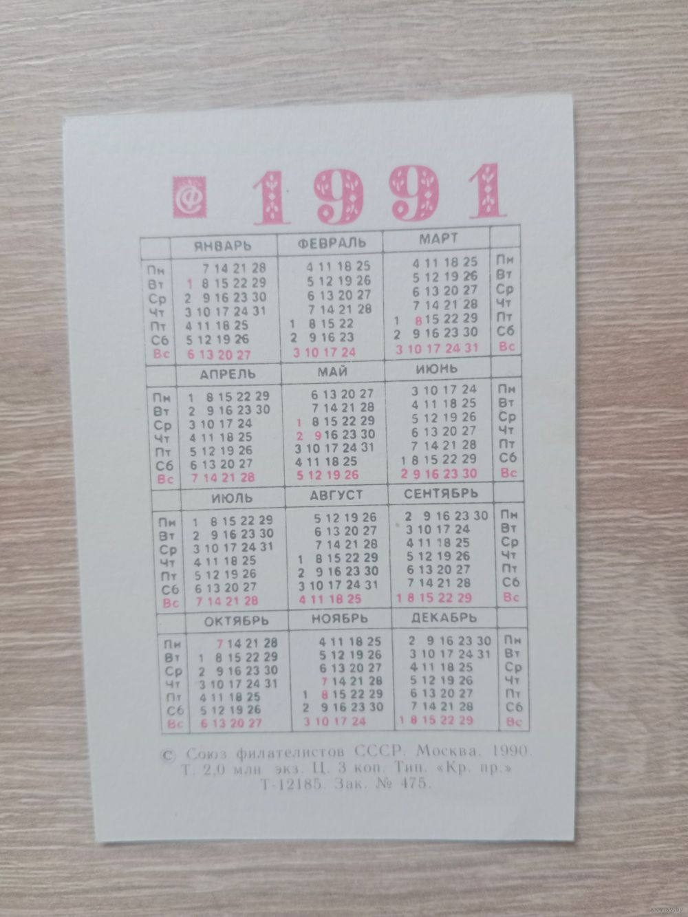 Календарик 1991