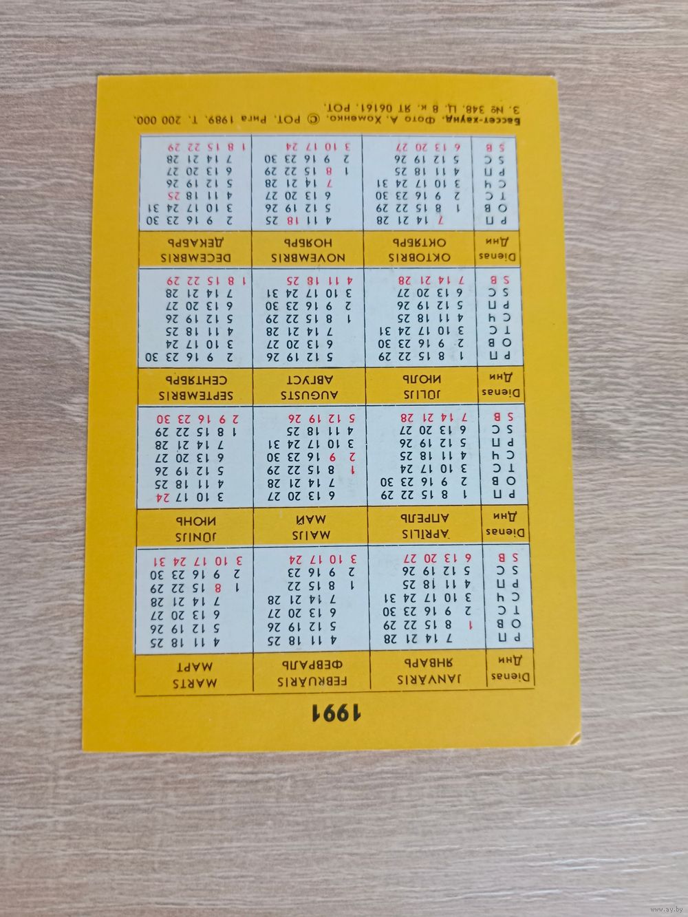 Календарик 1991