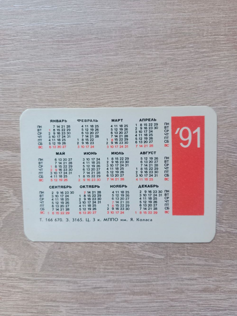 Календарик 1991
