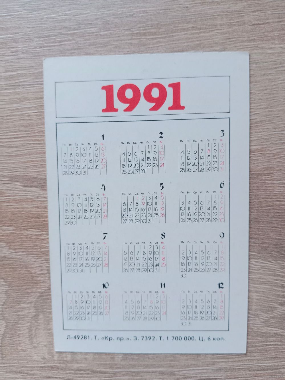 Календарик 1991