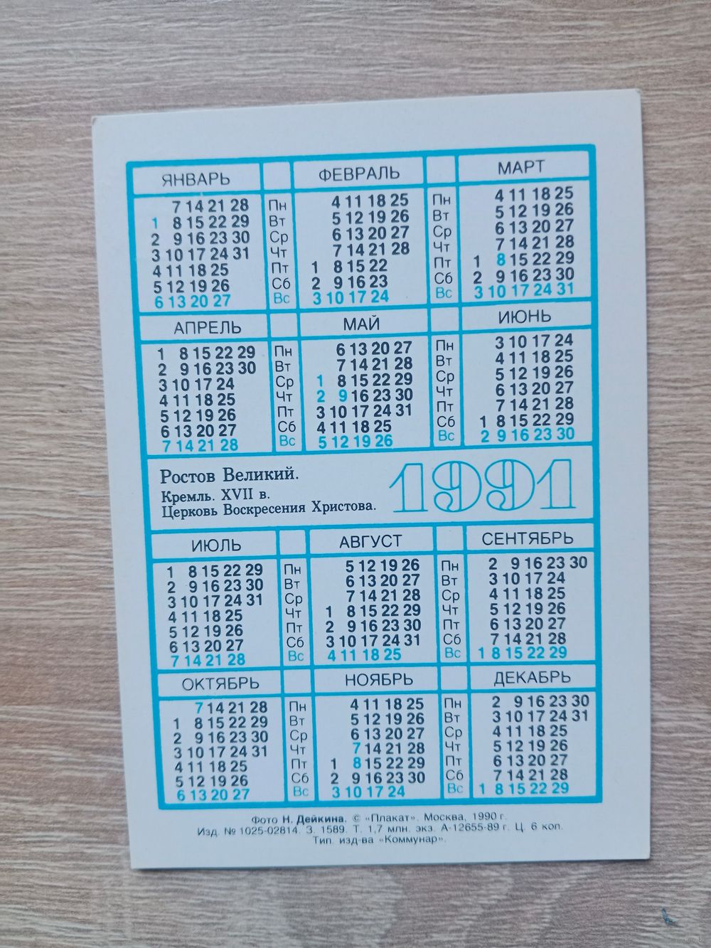 Календарик 1991