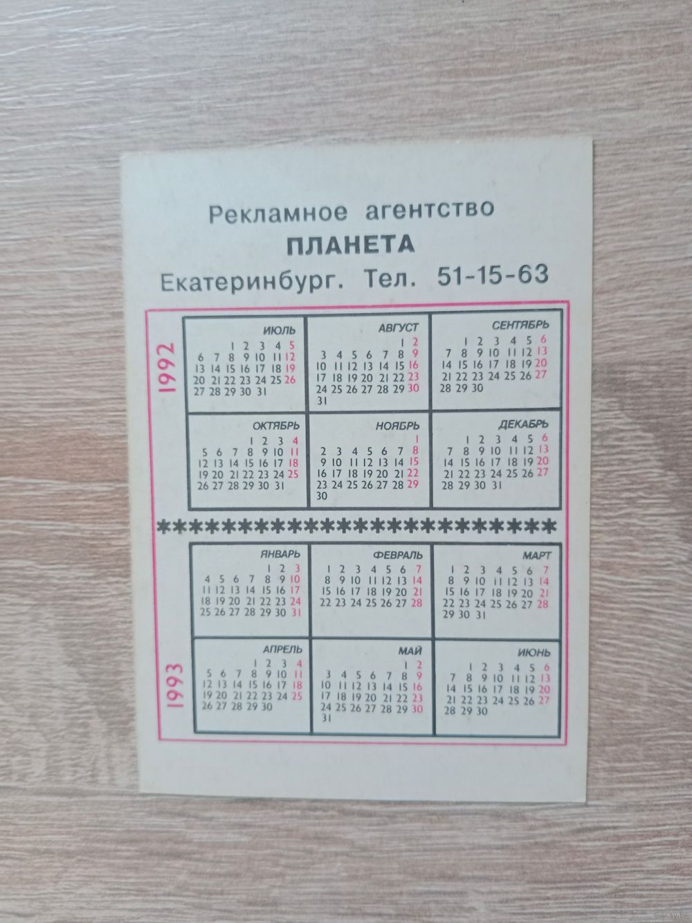 Календарик 1992-1993
