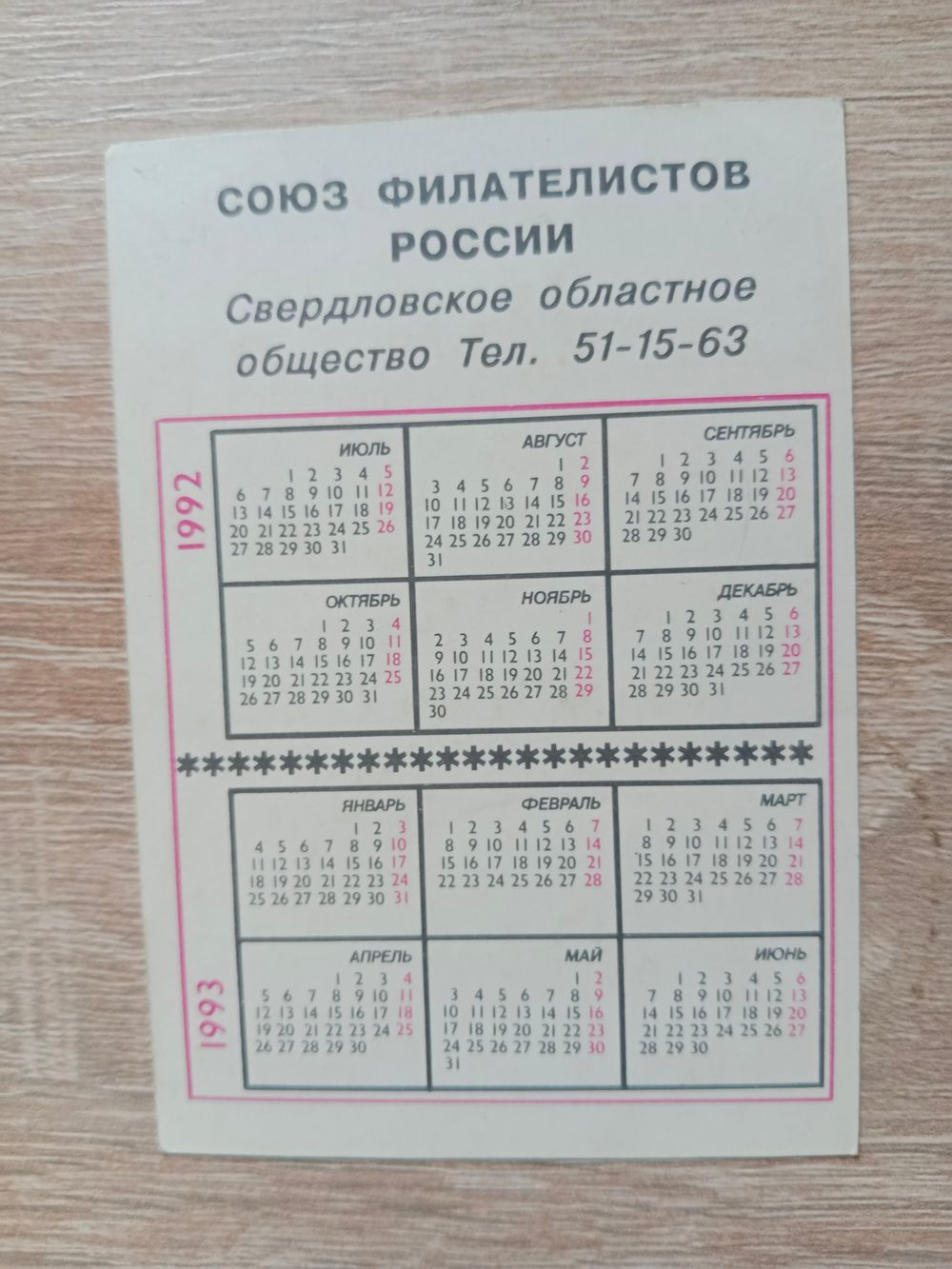 Календарик 1992-1993