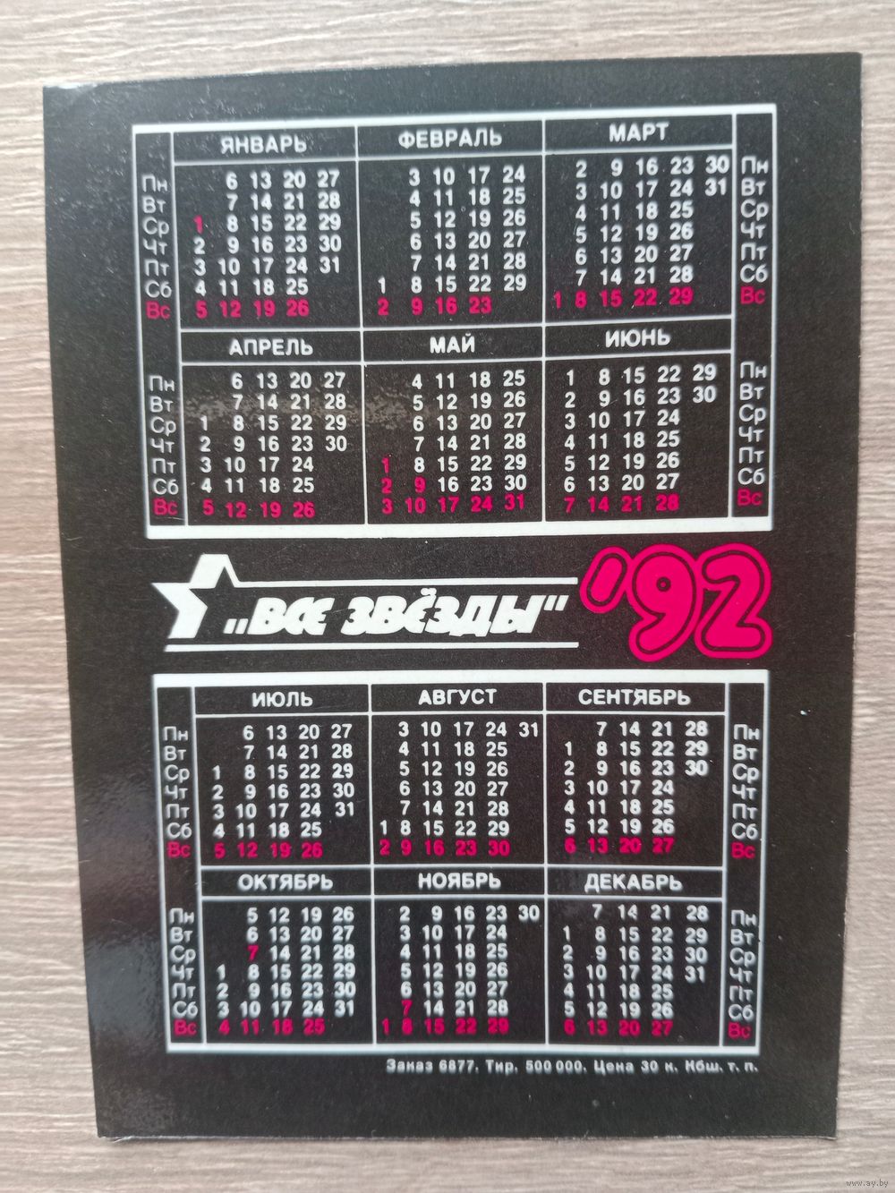Календарик 1992