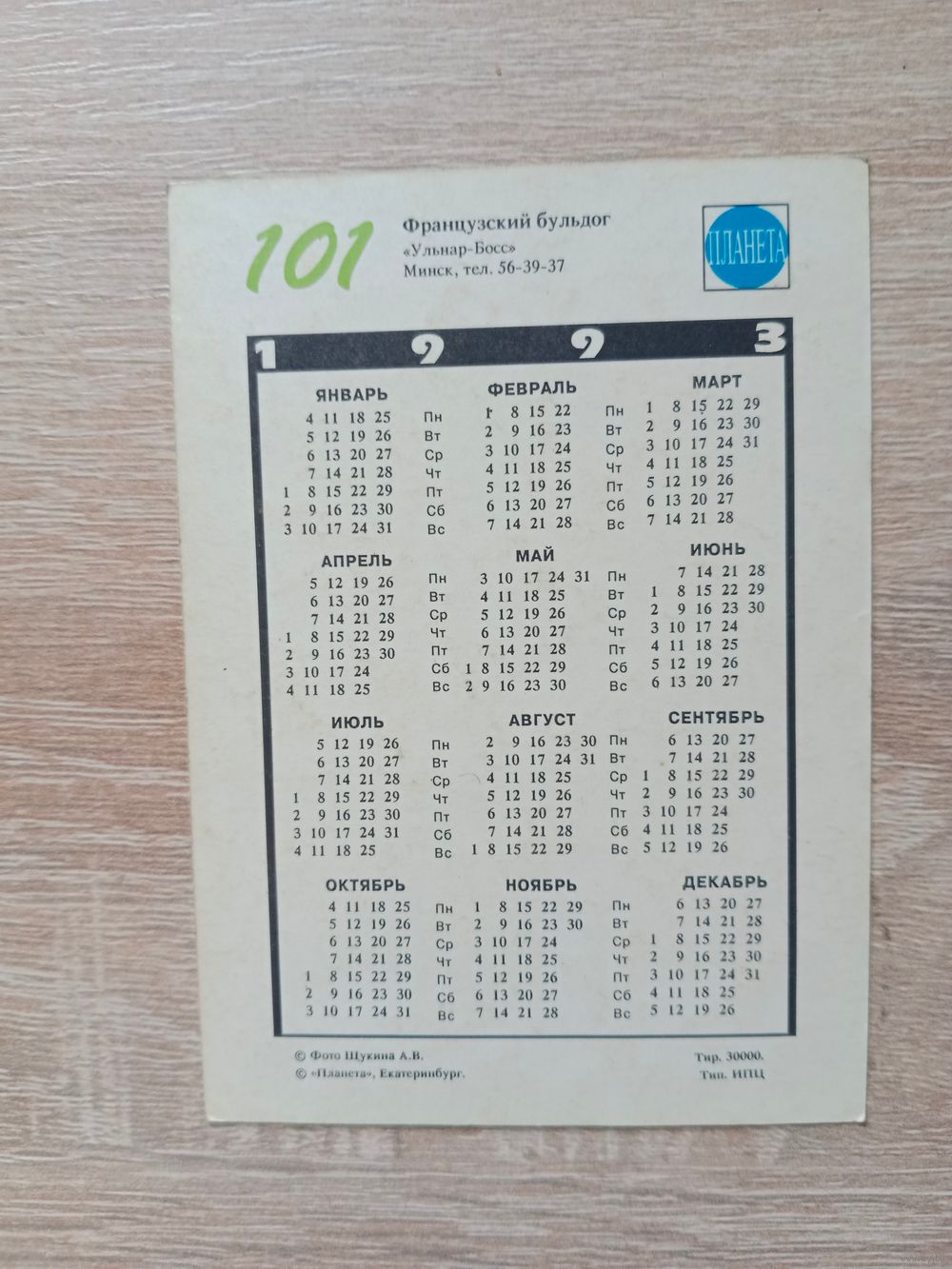 Календарик 1992
