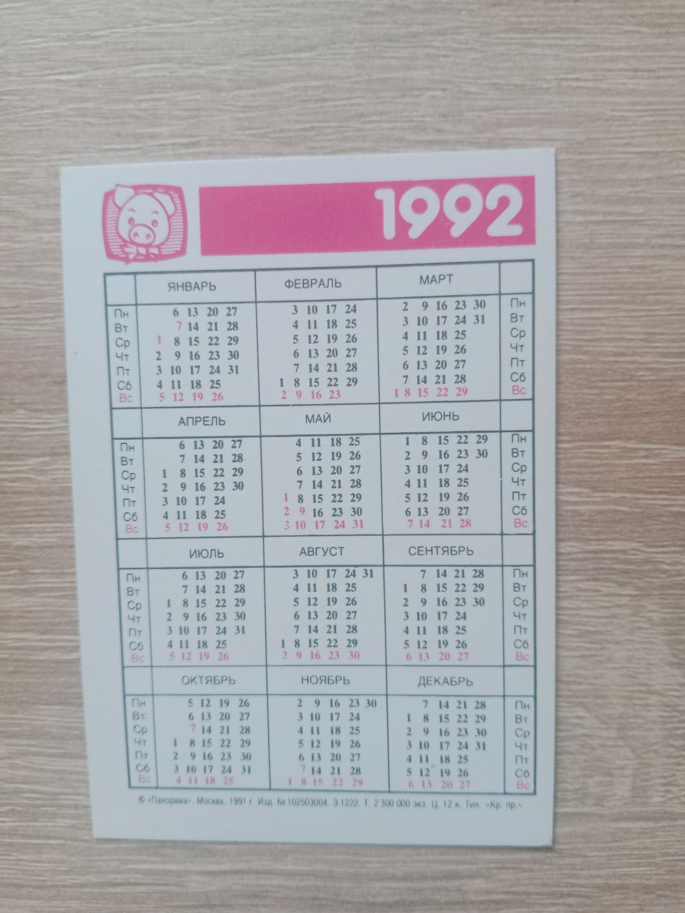 Календарик 1992
