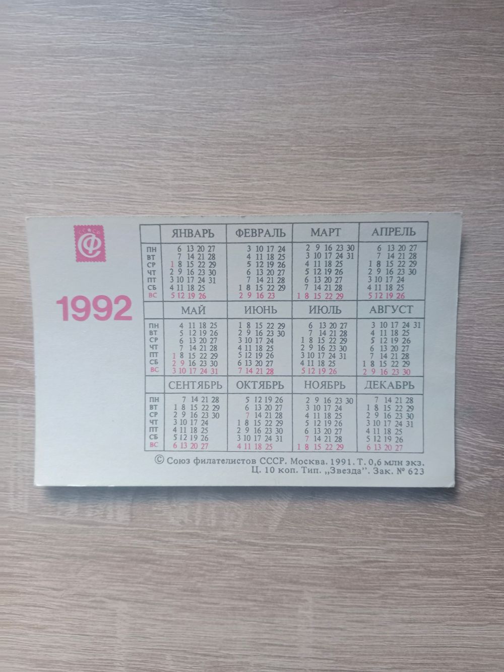 Календарик 1992