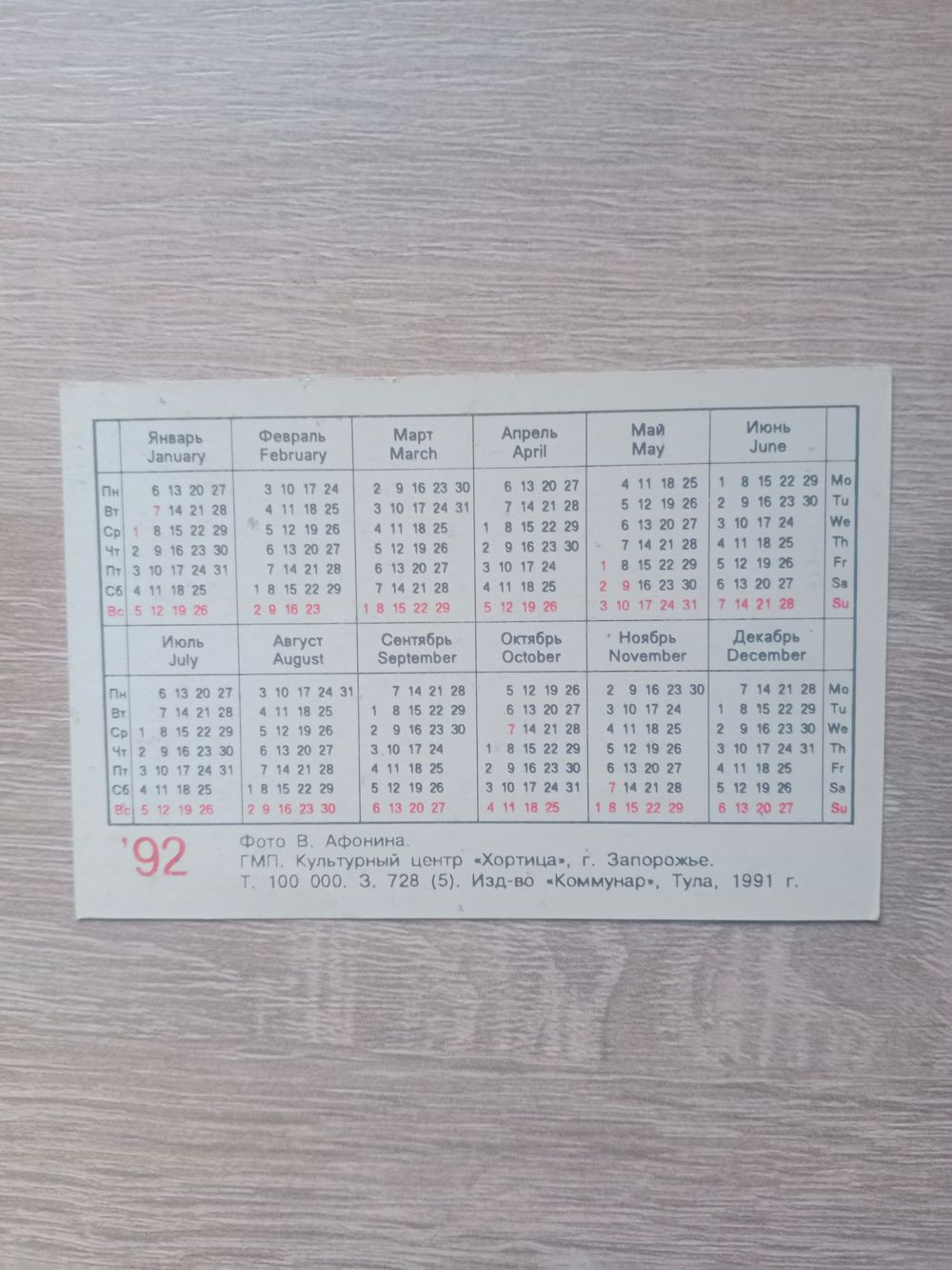 Календарик 1992